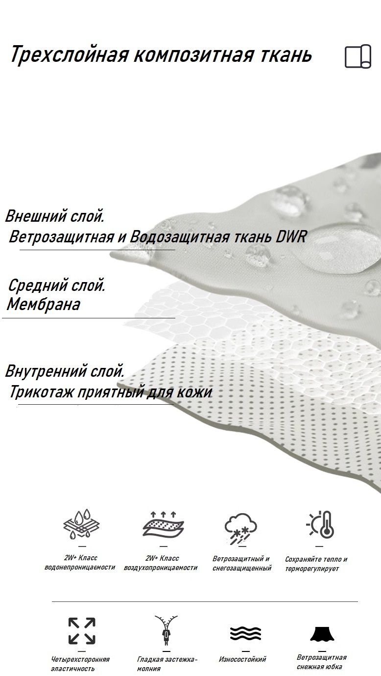 При выборе горнолыжной одежды она из главных факторов это характеристика мембраны, от нее зависит ваш комфорт, также это влияет и на цену, куртки с мембранной 20000мм/20000г/м2/24ч. (мембраны более низким уровнем не рекомендуем для активного отдых) будет значительно дешевле мембраны с 20000мм/20000г/м2/24ч (бренд и крой не берем в расчет). Мембрана 10000мм/10000г/м2/24ч. подойдет для легкого отдыха, без больших нагрузок, при легком ветре и снеге, 15000мм/15000г/м2/24ч и 20000мм/20000г/м2/24ч. такие мембраны обеспечат комфорт при более жестких условиях, например если вы собрались на фрирайд на целый день рекомендуем одежу с мембраной 20000мм/20000г/м2/24ч.