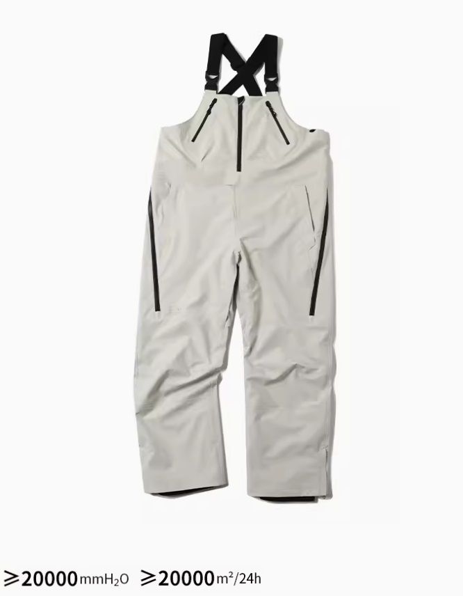 В штанах имеется 6 карманов, 2 сверху на груди, 2 по бокам, 2 сзади, все карманы с молниями. На шантанах имеются "юбки" которые заправляются в ботинки для защиты от снега, на штанинах имеются молнии позволяющие расширить нижнюю часть, в районе паха имеется молния для дополнительной вентиляции. На бедрах с двух сторон имеются молнии позволяющие расстегнуть штаны до колен. Лямки на спине идут крест на крест, что уменьшает вероятность спадания лямки с плеч.
