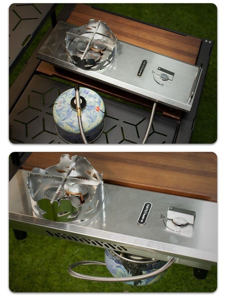 Туристическая печь стандарта IGT, данные мечи своего рода встраиваемая техника в мире кемпинга, печь интегрируется в стол с данным стандартом, но также ее можно просто поставить на ножки.