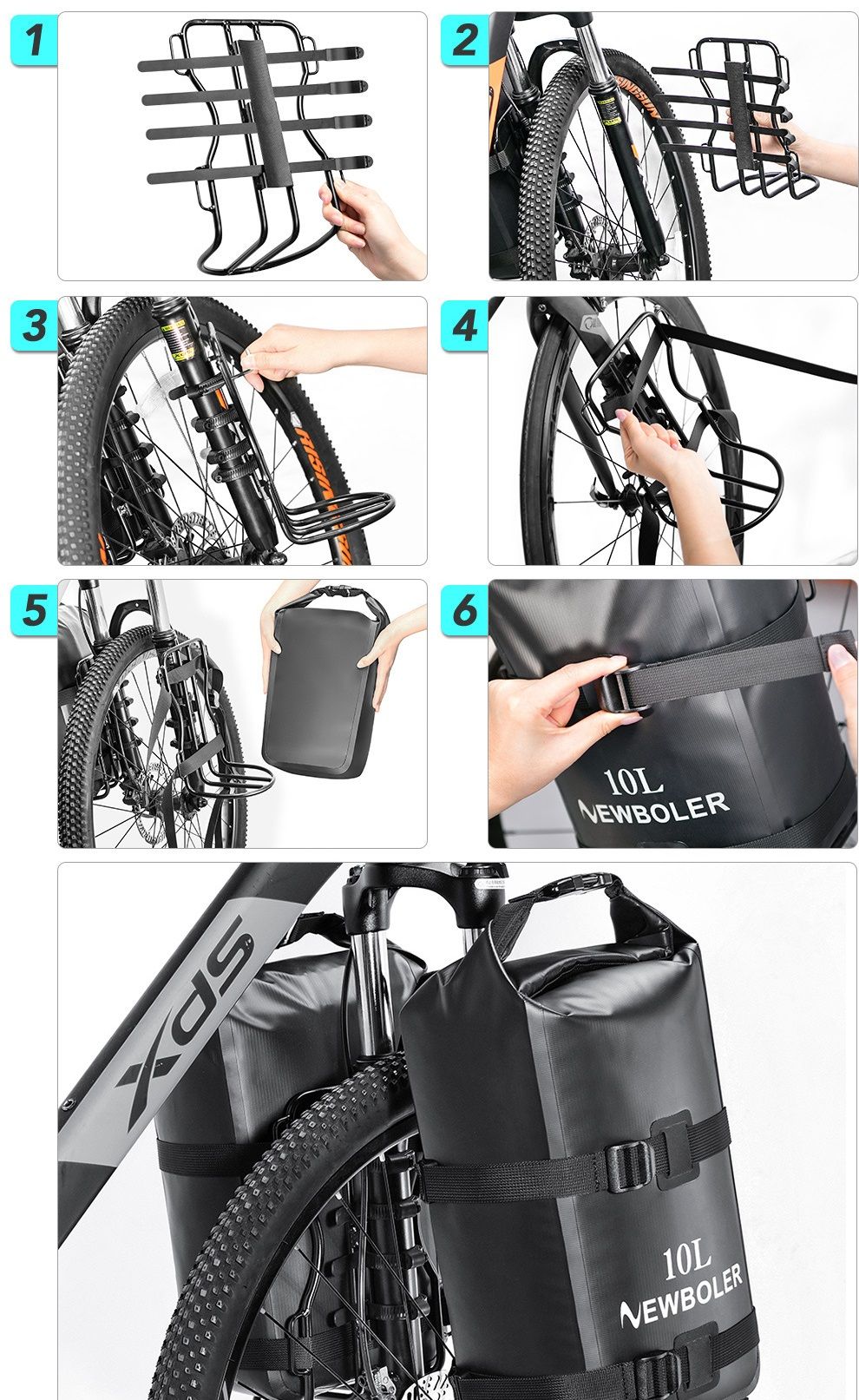 Полностью герметичная сумка на вилку велосипеда, идет в комплекте с алюминиевым багажником, который можно установить через болты на жесткую вилку гравийного велосипеда или с помощью хомутов на амортизационную вилку или на вилку без отверстий для болтов. Такая система позволяет больше нагружать сумки.