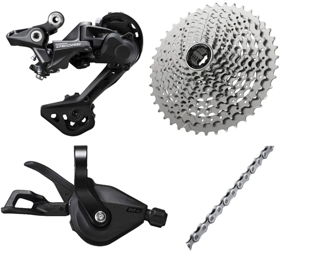 -Переключатель задний Shimano Deore RD-M5120 Кассета Shimano Deore CS-M4100-10 11-46Т Манетка задняя Shimano Deore SL-M4100 10 скоростей (Возможны варианты с монитором и без) Цепь Shimano CH-HG54