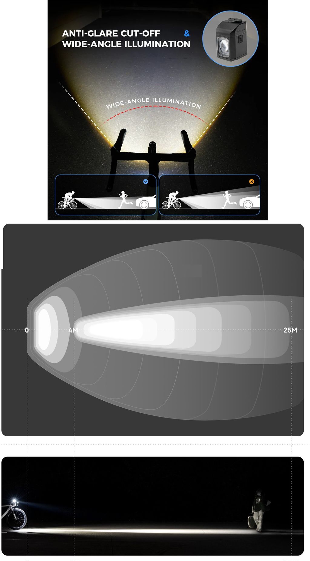 Фонарь предназначен для шоссейных и городских велосипедов, благодаря специальной линзе не слепит пешеходов и участников дорожного движения.