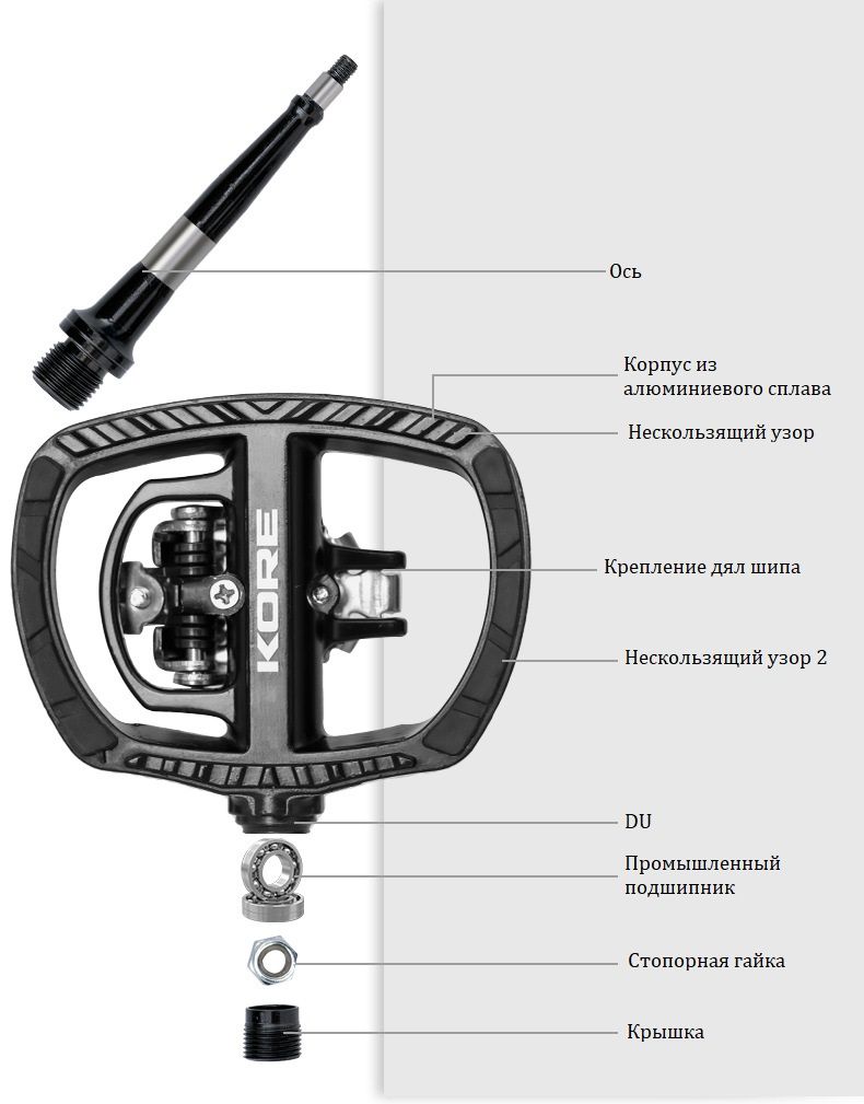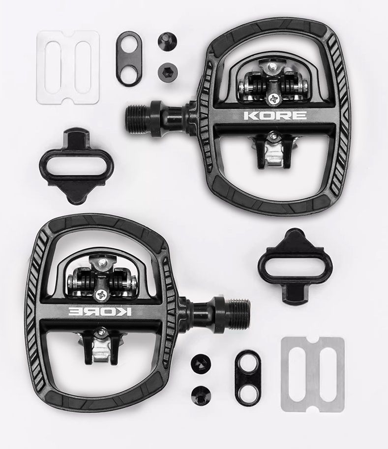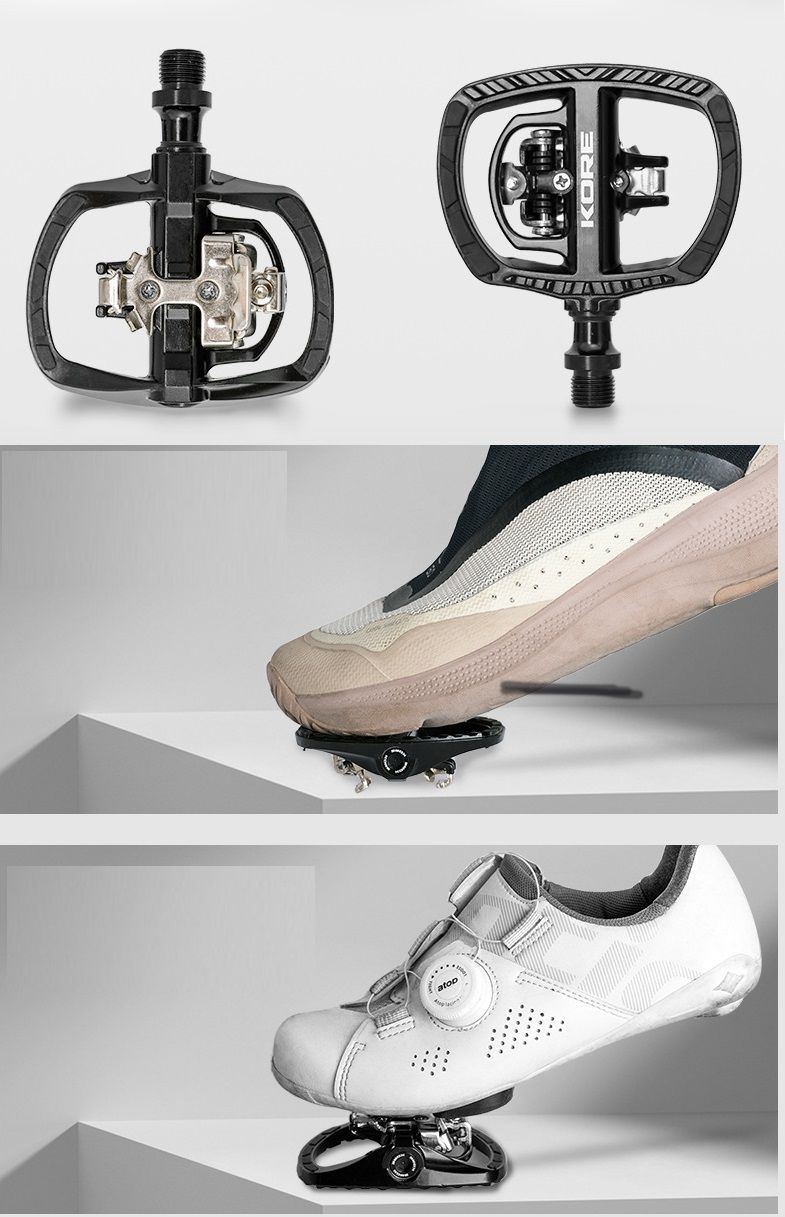 Педали контактные KORE C68 имеют две разные стороны, одну сторону можно использовать с контактной обувью, вторую можно использовать с обычной обувью. Данные педали подойдут для туризма или городского использования.