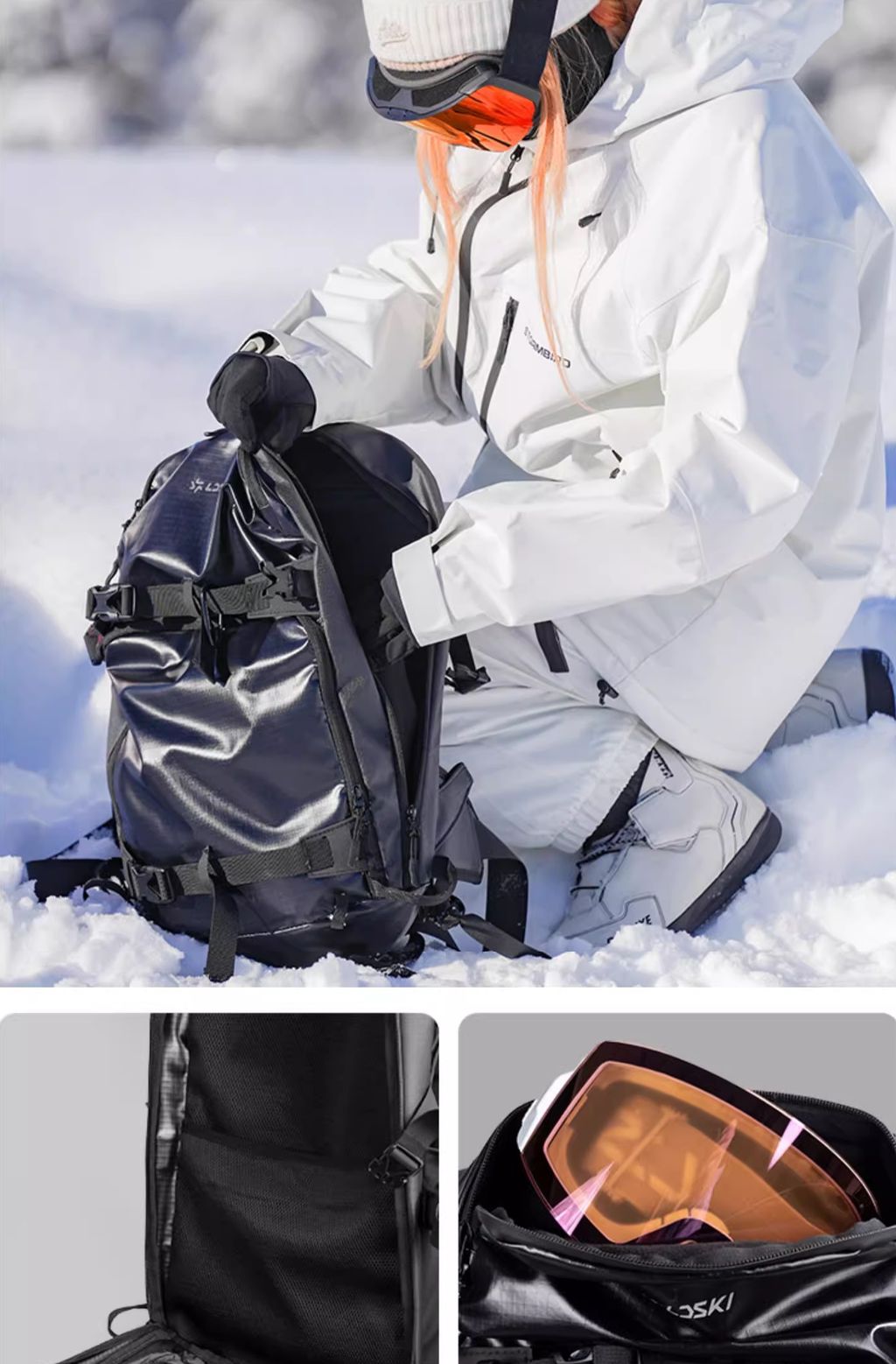- Возможность крепить сноуборд или лыжи