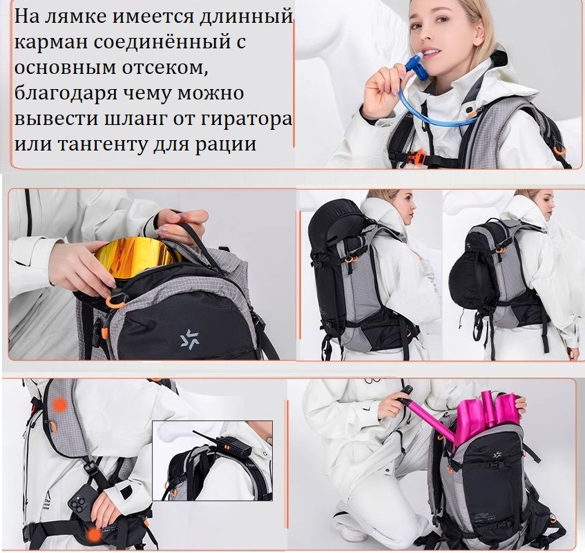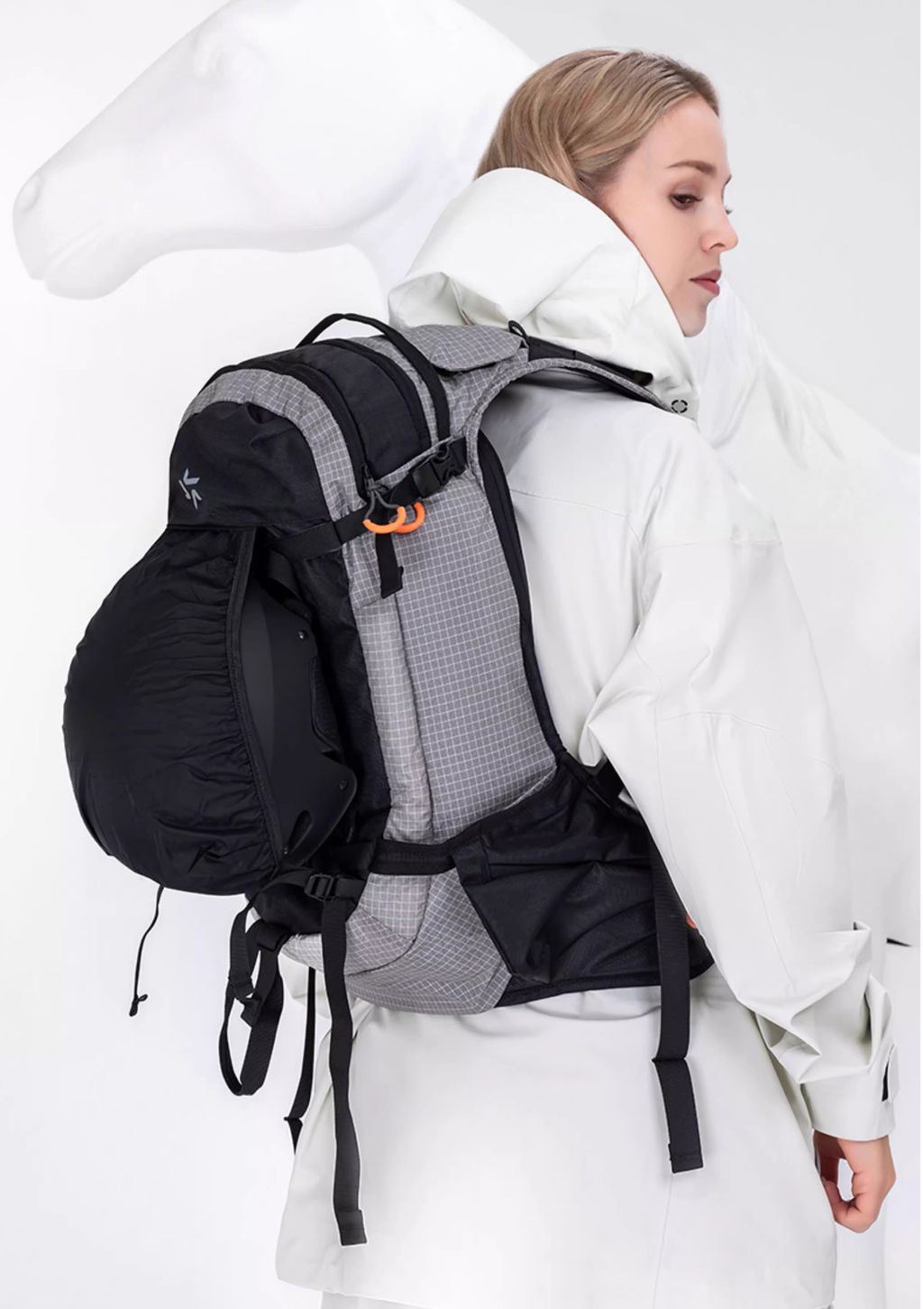 Рюкзака для катания на лыжах или сноуборде. Внешняя часть изготовлена из износостойкого и влагостойкого материала Dyneema. Качественная пластиковая морозостойкая фурнитура и молнии YKK.