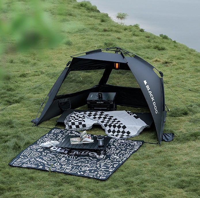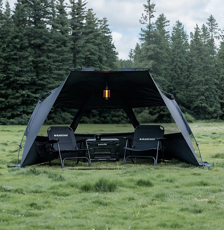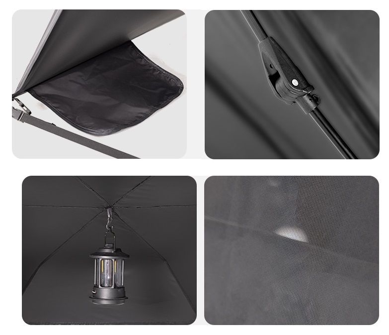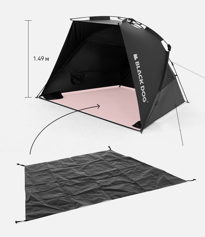 Особенность данного тента быстрый монтаж, устойчивость. У тента имеется 3 окна с сетками, благодаря высоте в 149 см, можно сидеть на стульях.