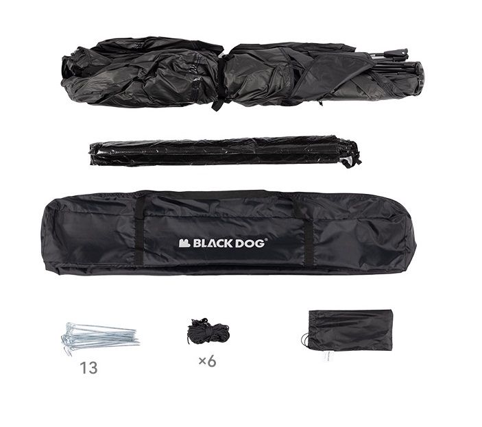 - В комплекте 2 стойки 2,4 метра высотой, Ø25мм, стропы и колышки