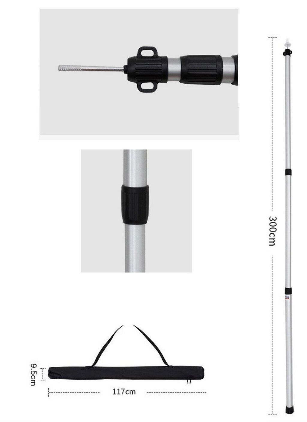 Удобные стойки легко настроить по высоте, от 117 до 300 см. Снизу имеется подпятник, сверху штырёк Размер: длина 3 м * В сложенном виде : 117 см * 9.5 см