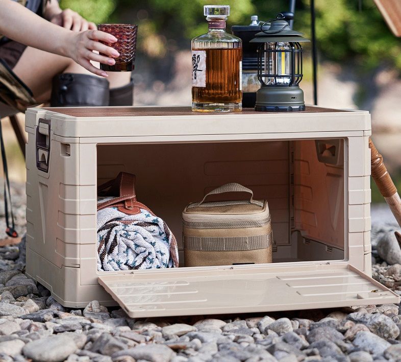 Складной ящик для кемпинга или пикников, отлично подойдет для хранения продуктов и другого снаряжения, защит продукты от грызунов и создаст больше порядка во время отдыха. Короб имеет 5 дверей, что облегчает доступ к вещам. Коробы можно ставить друг на друга создав удобную систему хранения или использовать как столик.
