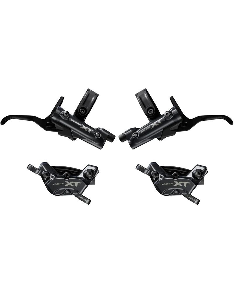 Дисковый тормозной суппорт Shimano Deore XT BR-M8220 Тормозная ручка Shimano Deore XT BL-M8200 Deore XT – Где страсть встречается с точностью. Предсказуемая мощность с первого рывка. Комплект дисковых тормозов Shimano Deore XT, состоящий из рычага BL-M8200 и гидравлического суппорта BR-M8220. Технология SERVO WAVE, регулирующая трение между тормозными колодками и диском на протяжении всего процесса торможения, обеспечивает оптимизированную кривую эффективности и, соответственно, более сбалансированное торможение. Кроме того, вся тормозная система использует новое минеральное масло (SHIMANO LOW VISCOSITY OIL), представленное в серии XTR M9200, которое отличается меньшей вязкостью по сравнению с предыдущей версией, что позволяет поддерживать эффективность торможения на постоянном уровне в более широком диапазоне температур. Система Easy Hose Joint System обеспечивает простоту и удобство обслуживания, значительно упрощая замену тормозного шланга. Тормозная ручка Shimano Deore XT BL-M8200 Тормозные ручки Deore XT серии M8200 отличаются не только мощным и надежным торможением, но и впечатляющей эргономикой, идеально подходящей для руки. Это достигается, прежде всего, благодаря концепции ERGO FLOW, которая отличается слегка изогнутым вверх лепестком тормозного рычага и оптимизированной, более узкой точкой опоры, повторяющей естественный изгиб пальца. Результат — сочетание мощного тягового усилия с плавным ходом рычага для точной модуляции и максимального контроля. Алюминиевый рычаг тормоза отличается повышенной прочностью, а обновлённый регулировочный диск облегчает настройку досягаемости. Интерфейс I-Spec EV обеспечивает не только простое соединение с рычагом переключения передач, но и более аккуратный кокпит. Дисковый тормозной суппорт Shimano Deore XT BR-M8220 Тормозной суппорт BR-M8220 текущей серии Deore XT разработан для максимальной эффективности, стабильности и контроля. Тормоз Postmount имеет 4-поршневую конструкцию с поршнями двух диаметров 15мм и 17мм и оптимизированными уплотнениями для надёжного торможения и постоянного замедления в любых условиях и при любых погодных условиях. Благодаря такому решению двухкомпонентный суппорт обеспечивает характеристики, совместимые с даунхиллом, что позволяет ему выдерживать высокие нагрузки как в гонках эндуро, так и в однодневных трейловых турах. Обновлённое овальное крепление тормозных колодок в сочетании с идеально подобранными вариантами тормозных колодок устраняет ненужный шум.