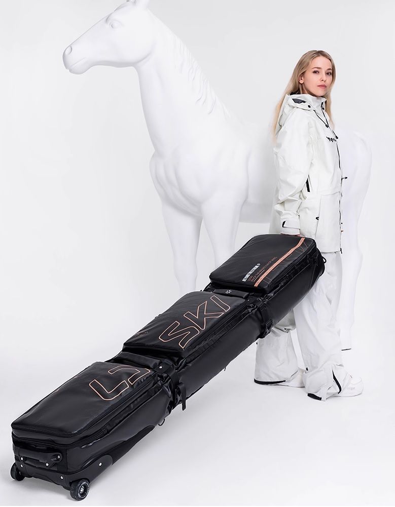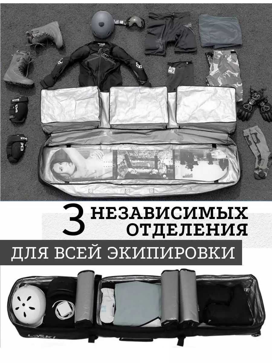 Чехлы LDski Вас приятно порадуют улучшенным дизайном и большим выбором цветовых решений. Сверхпрочный водоотталкивающий внешний материал чехла, устойчив к температурам до -35 градусов. Внешний водонепроницаемый и износопрочный материал чехла, выполнен из ПВХ и полиэстера 900D с покрытием из ТПУ. Три просторных отделенных отсека, в которые можно поместить весь комплект горнолыжного оборудования (лыжи-сноуборд, обувь, шлем, куртка, штаны, термобелье) и личные вещи. При этом разделение на влажные и сухие секции, предотвращает попадание снега или воды из вашего снаряжения в сухую одежду. Чехол оснащен прочными замками, которые надежно защитят содержимое при перевозке. Внутри имеется маленький карман для хранения мелочи. Чехол можно переносить с помощью лямок, как рюкзак, которые спрятаны в дополнительном кармане с обратной стороны чехла. Можно нести при помощи четырех ручек расположенных с боку и на лицевой стороне чехла или буксировочной ручки и колес. Мягкий ремень для ношения через плече, очень удобный, даже для длительного ношения. На чехле установлены полиуретановые колеса с подшипниками для безотказной работы в любых условиях и рассчитаны на большие нагрузки в морозных условиях. Чехол снабжен специальной системой крепежа лыж или сноуборда. Она включает: специальный набор застежек и стяжек на липучках, для надежного крепления лыж или сноуборда. Чехлы снабжены фурнитурой высокого качества Duraflex. Пряжки обладают отличной гибкостью при низкой температуре. Благодаря всему этому чехлы LDski отлично подходят для перелетов и путешествий на горнолыжные курорты. Комплект: чехол, комплект липучек для лыж и комплект для сноуборда.