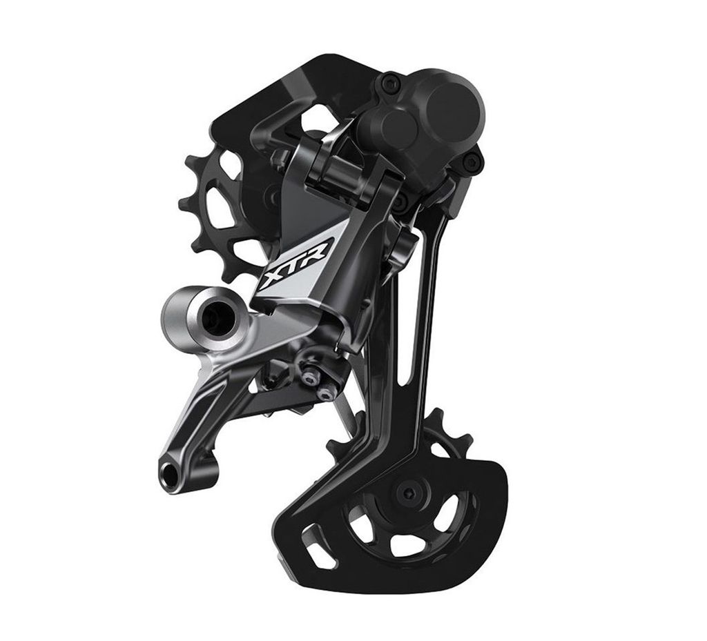Сниженный вес некоторых деталей RD-M9100 обеспечивается за счет изготовления из карбона. Задний переключатель XTR доступен в двух вариантах: с короткой рамкой (GS) для кассет 10-45Т, и с длинной рамкой (SGS), которая также может работать с кассетами 10-51Т.