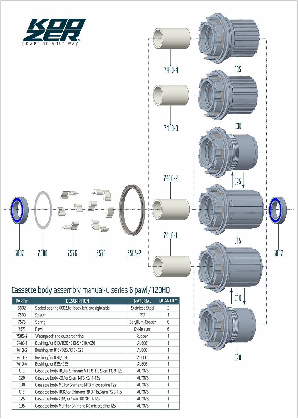 Барабан для втулок KOOZER серия: "С" (C10 (HG for MTB 8-11S))