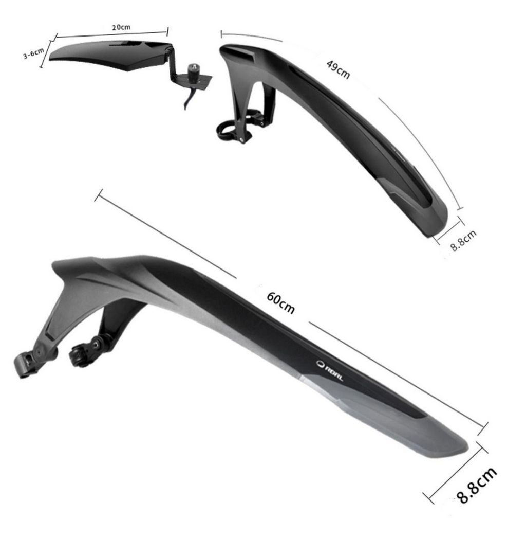 Велосипедные крылья RBRL RL-990F/1000R+RL-100 подходят для колес размером 24-29 дюймов. Ширина шины: 1,5-2,35 дюйма