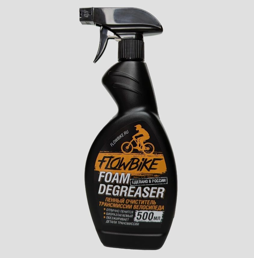 FLOW FoamDegreaser - пенный очиститель трансмиссии велосипеда. Эффективное пенное средство для межинтервальной очистки компонентов трансмиссии велосипеда: кассеты, звезд, цепи, переключателей скоростей. Удаляет пыль, грязь, остатки масел и смазок.