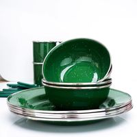Комплект: Тарелка 24,8*2,7см - 4 шт Тарелка14,5*5,1 - 4 шт Кружка - 4шт Ложка, вилка, нож - 4 шт Вес нетто: 2.4 кг Материал: эмалированная сталь