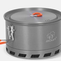 Котелок имеет обрезиненную складную ручку, которая складывается в габарит котелка и крышку с ручкой, у котелка есть радиатор. Благодаря радиатору, КПД при подогреве воды увеличивается на 30% Объем: 2.1л Габариты товара (мм):