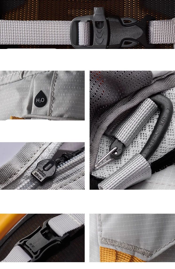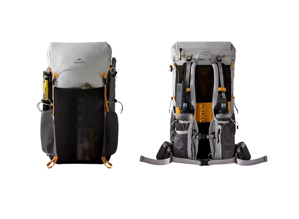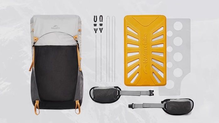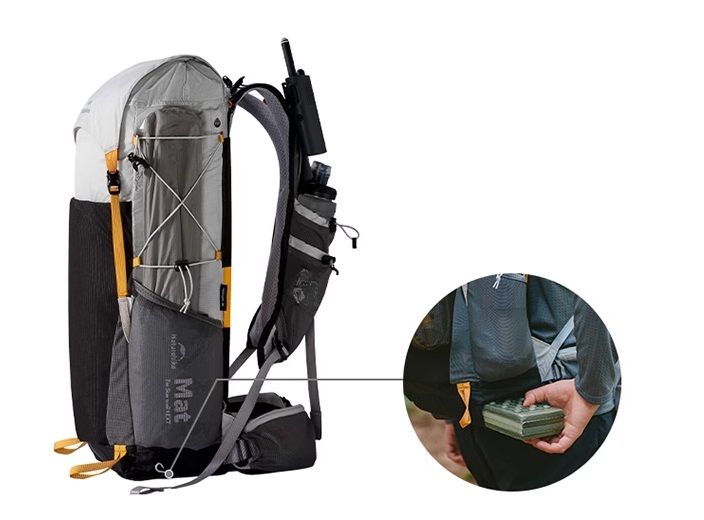 Дополнительные элементы, такие как нагрудная стяжка и поясной ремень, надежно фиксируют рюкзак на теле, предотвращая его смещение при активных движениях. Плотная посадка и смещенный вверх центр тяжести обеспечивают комфорт во время похода. Дополнительно в рюкзаке предусмотрено отверстие для питьевой системы, застежки для крепления трекинговых палок, карман для рации и скрытый свисток.