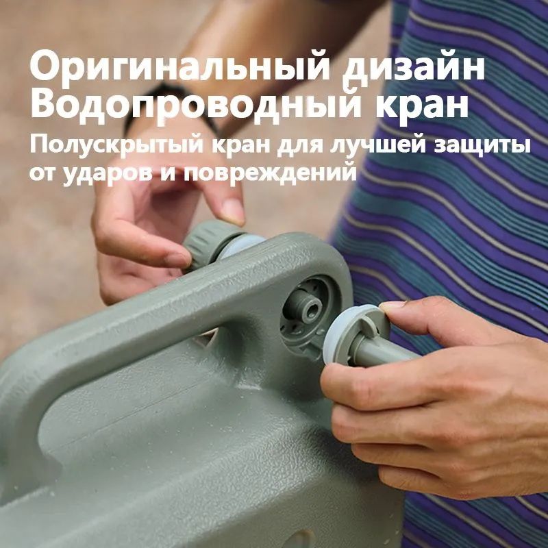 Удобный дизайн дозирования: Канистра для воды имеет удобный носик для мытья и наполнения, а также уникальный кран на другом конце для дозированной подачи воды.