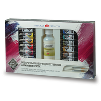 Набор красок акриловых "ЛАДОГА", 12 цветов*18 мл+2 кисти+лак.