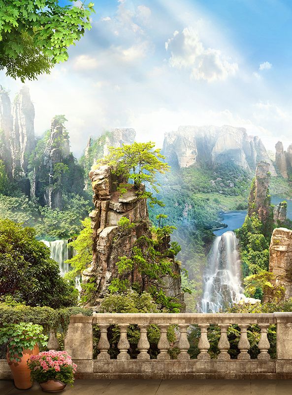 Фотообои E-049 Водопад в лучах солнца 300х270