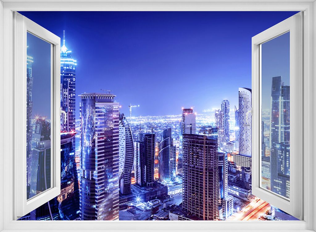 Фотообои H-025 Окно с видом на ночной город 200х147