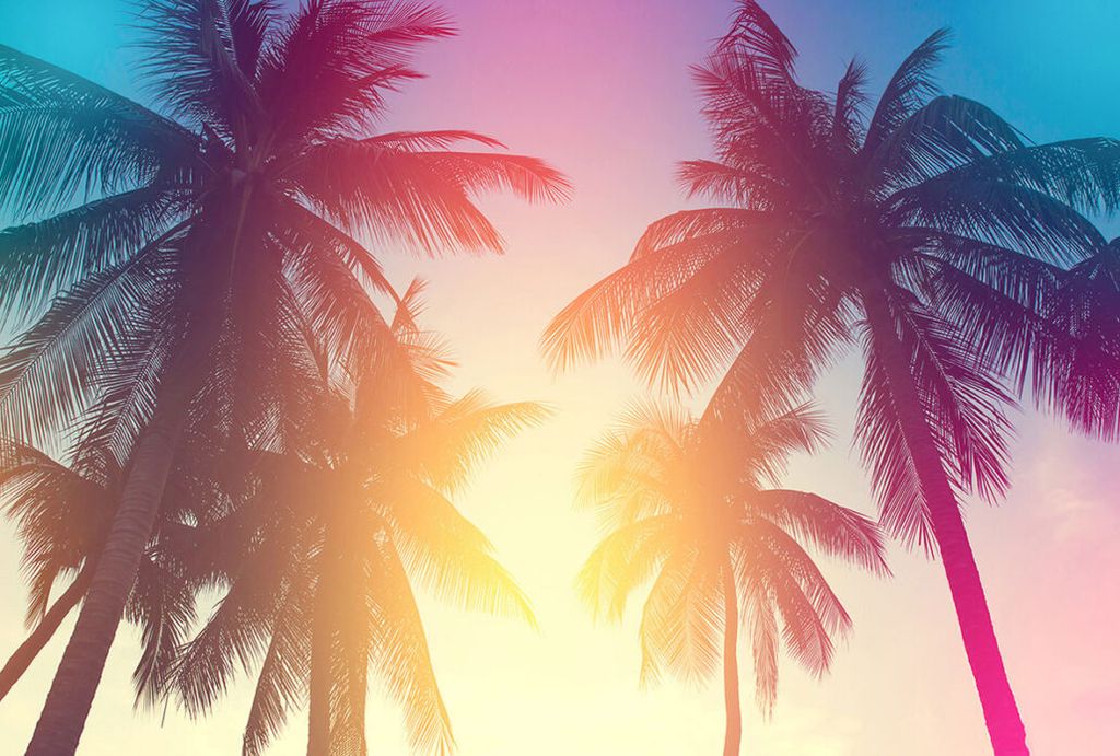 Фотообои F-455 Фламинго в пальмах акварель 400х270