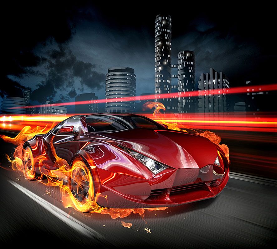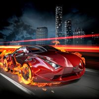 Фотообои P-010 Огненная машина зеркально 300х270