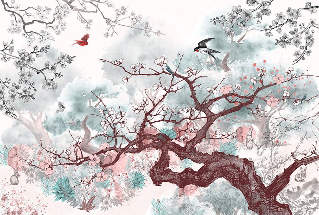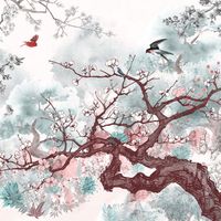Фотообои T-196 Птицы на ветках 300х270