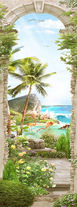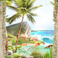 Фотообои T-262 Фламинго под пальмой 100х270