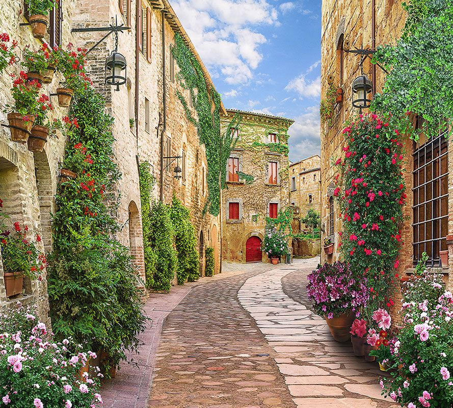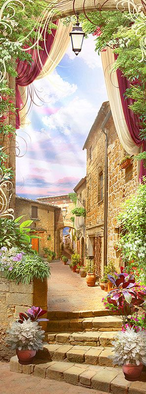 Фотообои T-255 Улочка с цветами 300х270
