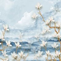 Фотообои T-050 Ветви с белыми цветами 300х270