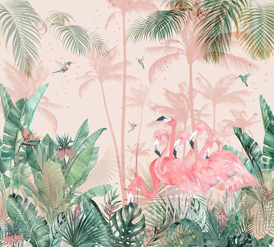 Фотообои Z-303 Розовые фламинго в тропиках 300х270