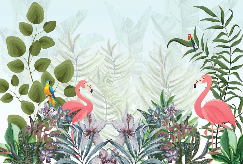 Фотообои Z-311 Фламинго в тропических листьях 400х270