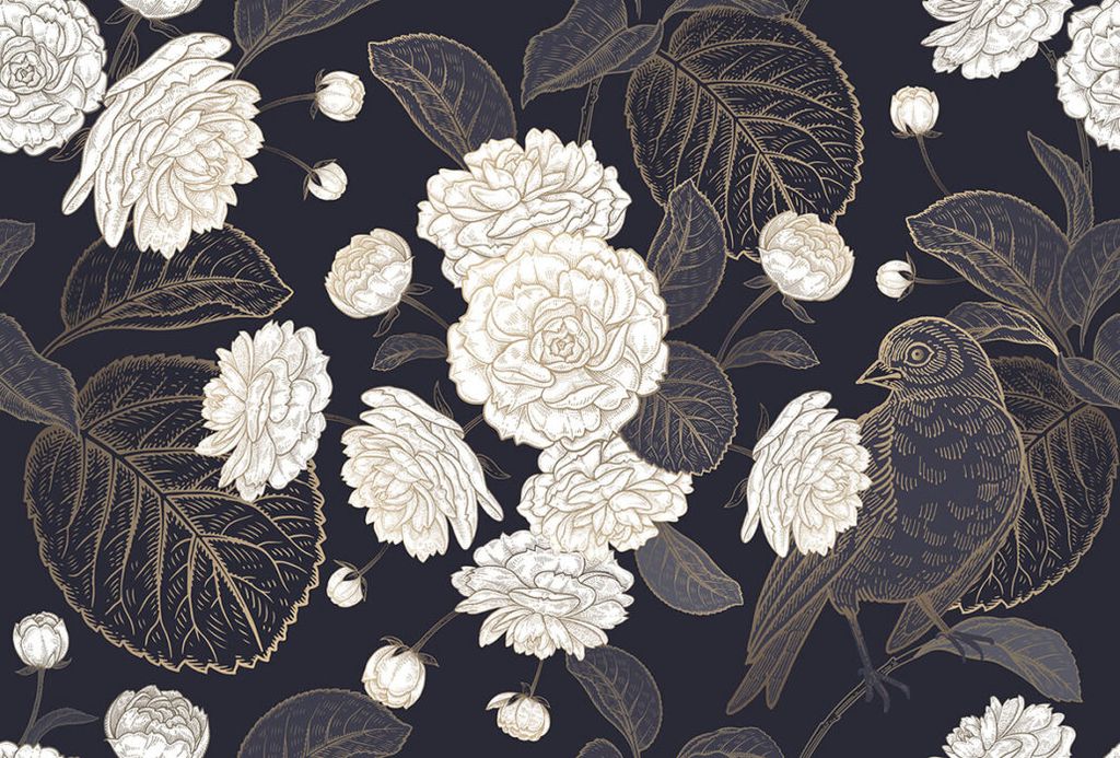 Фотообои Z-269 Птица в крупных цветах (повторяющиеся) 400х270