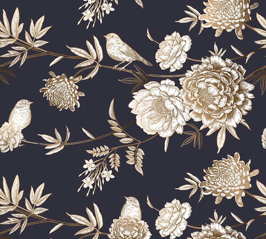 Фотообои Z-263 Золотые птицы на ветках (Повторяющиеся) 300х270