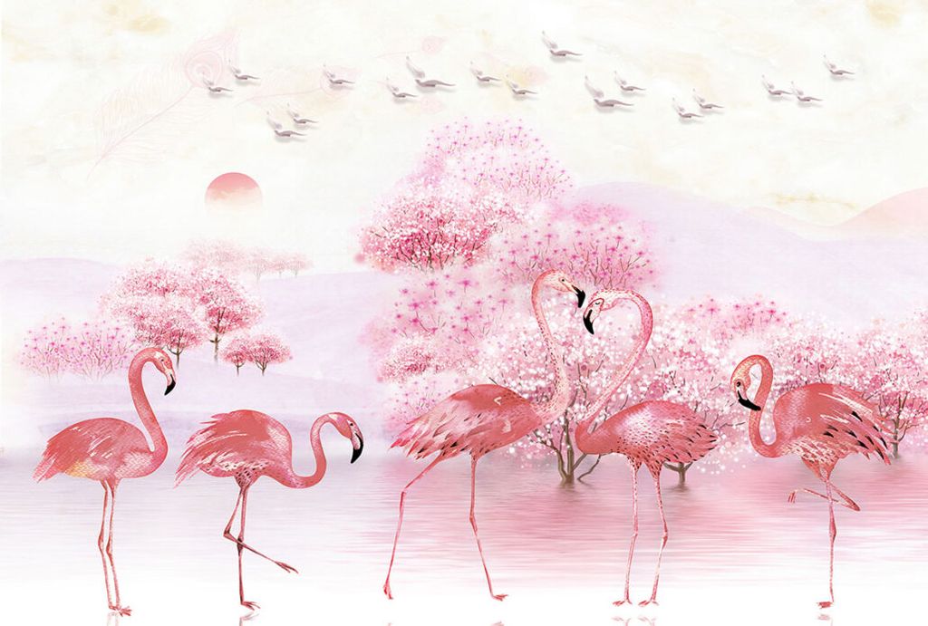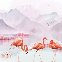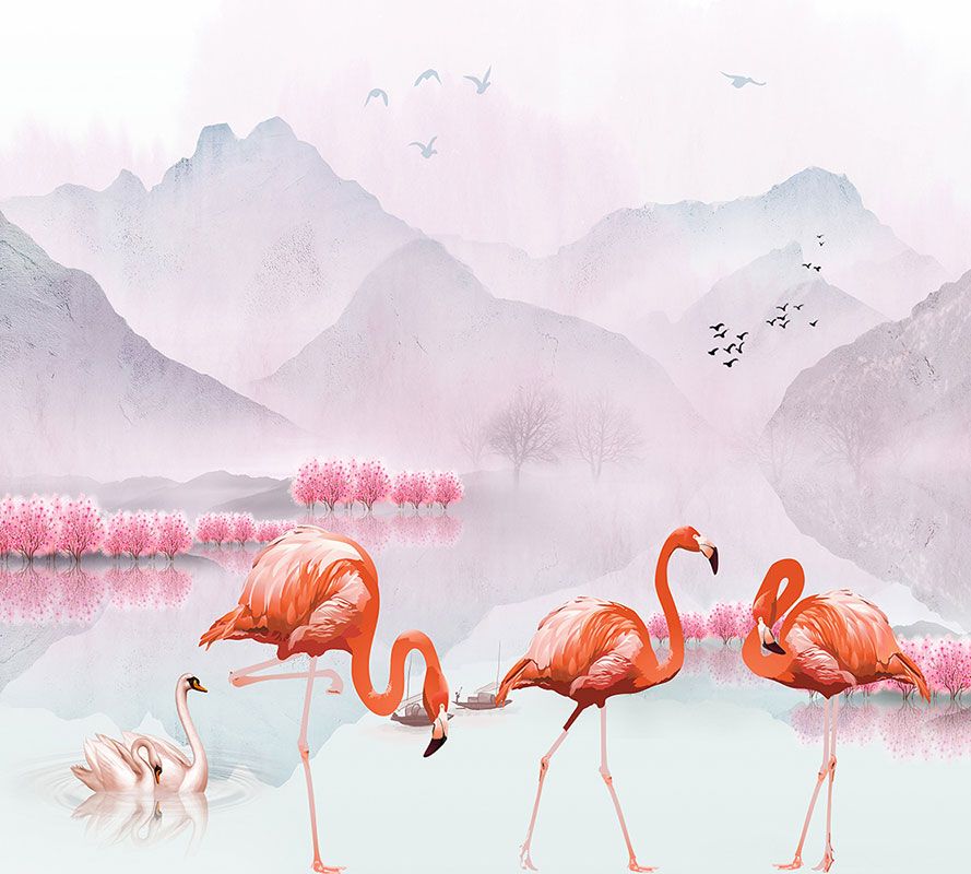 Фотообои Z-282 Фламинго на фоне гор 300х270