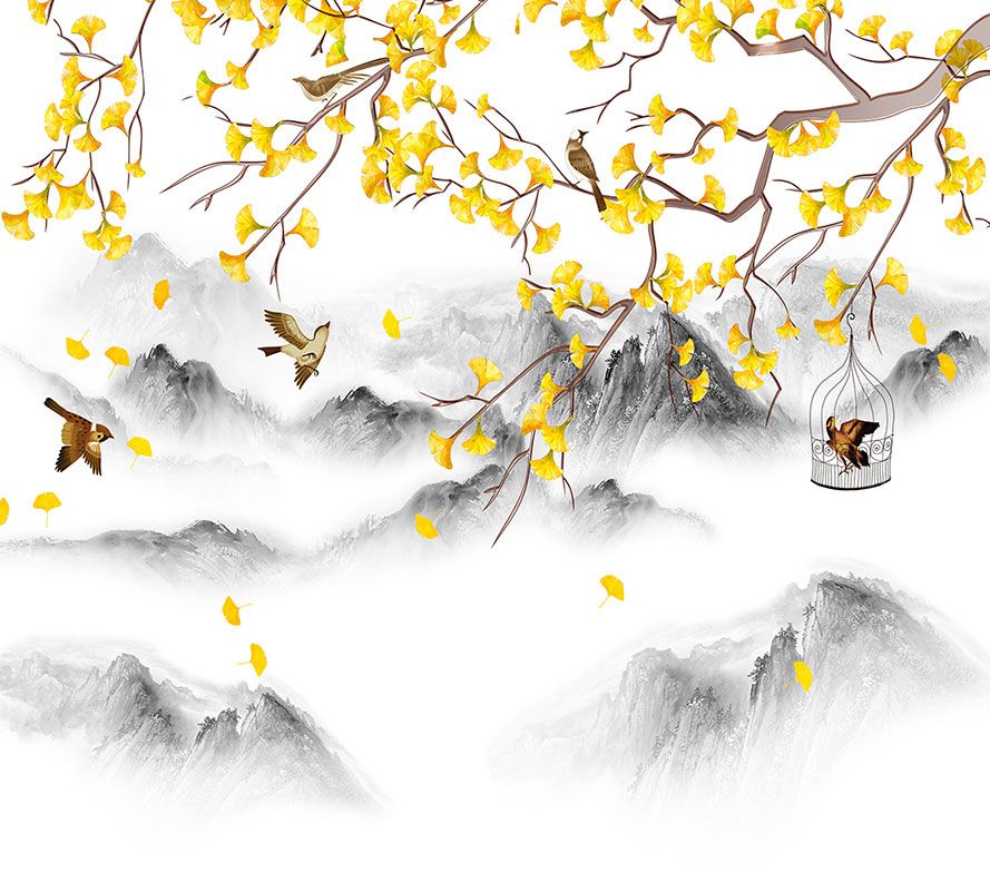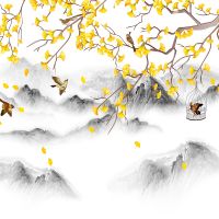 Фотообои Z-277 Желтые ветви на фоне гор 300х270