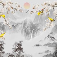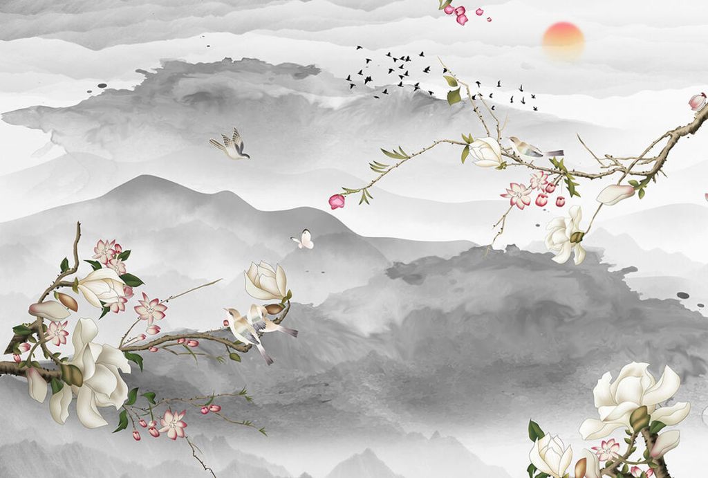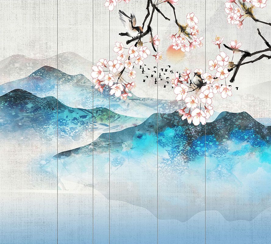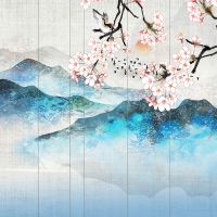 Фотообои Z-273 Веточка сакуры на фоне гор 300х270