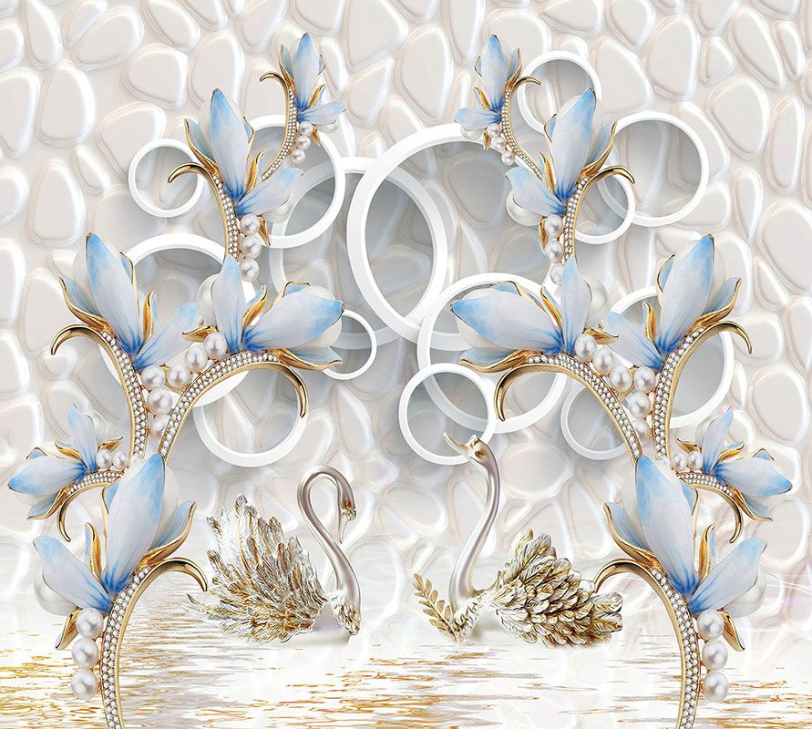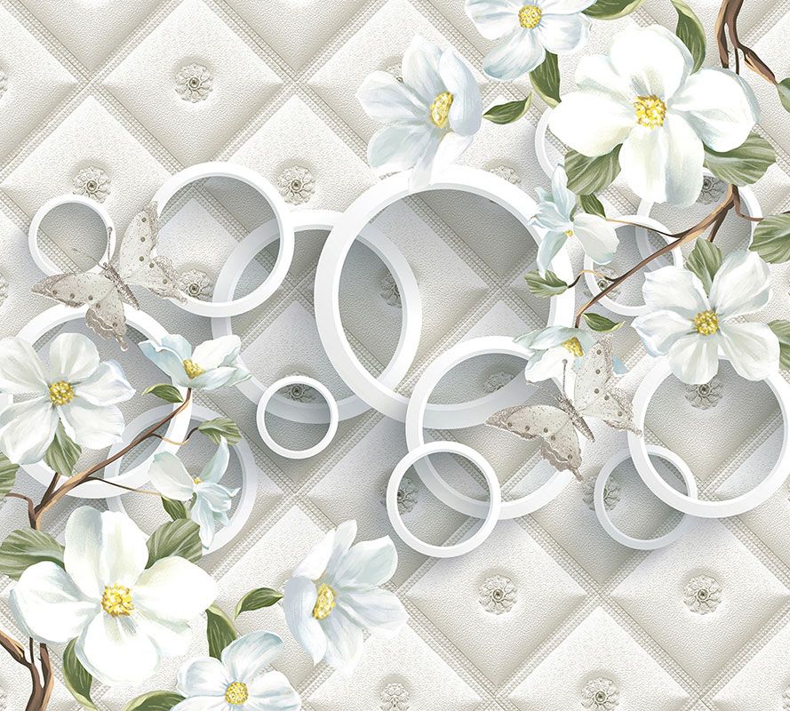 Фотообои Z-237 Цветы на фоне объемных колец 300х270