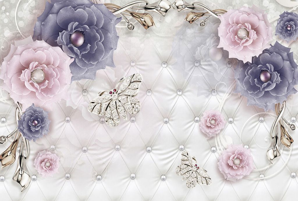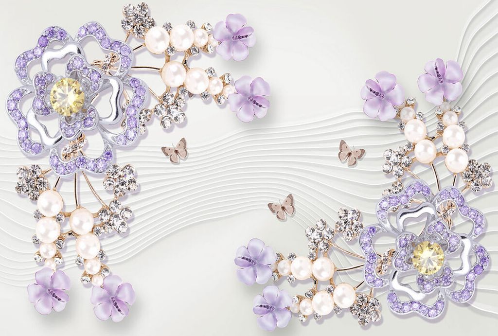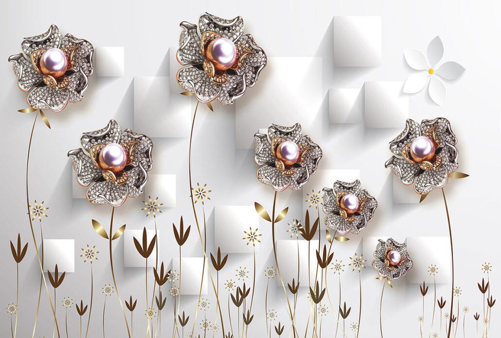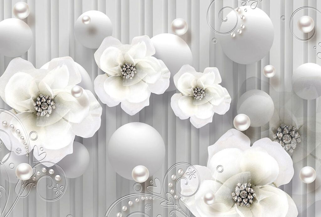 Фотообои Z-238 Цветы с жемчугом на объемном фоне 400х270