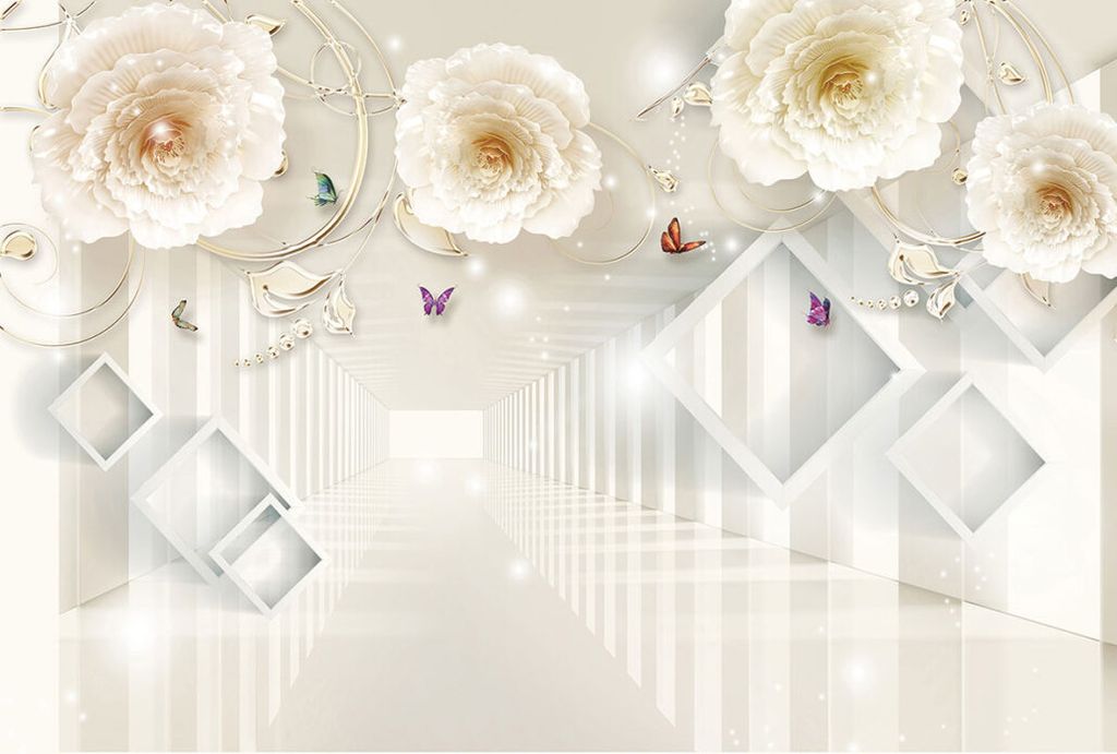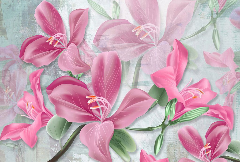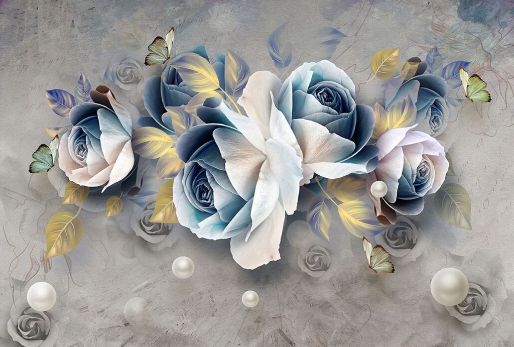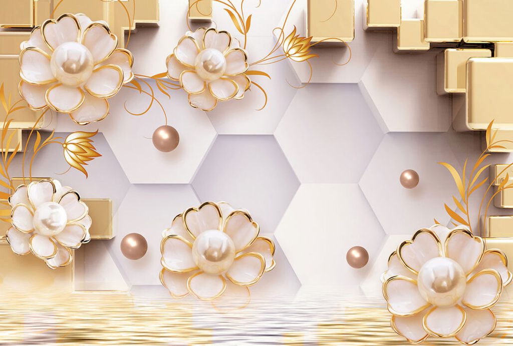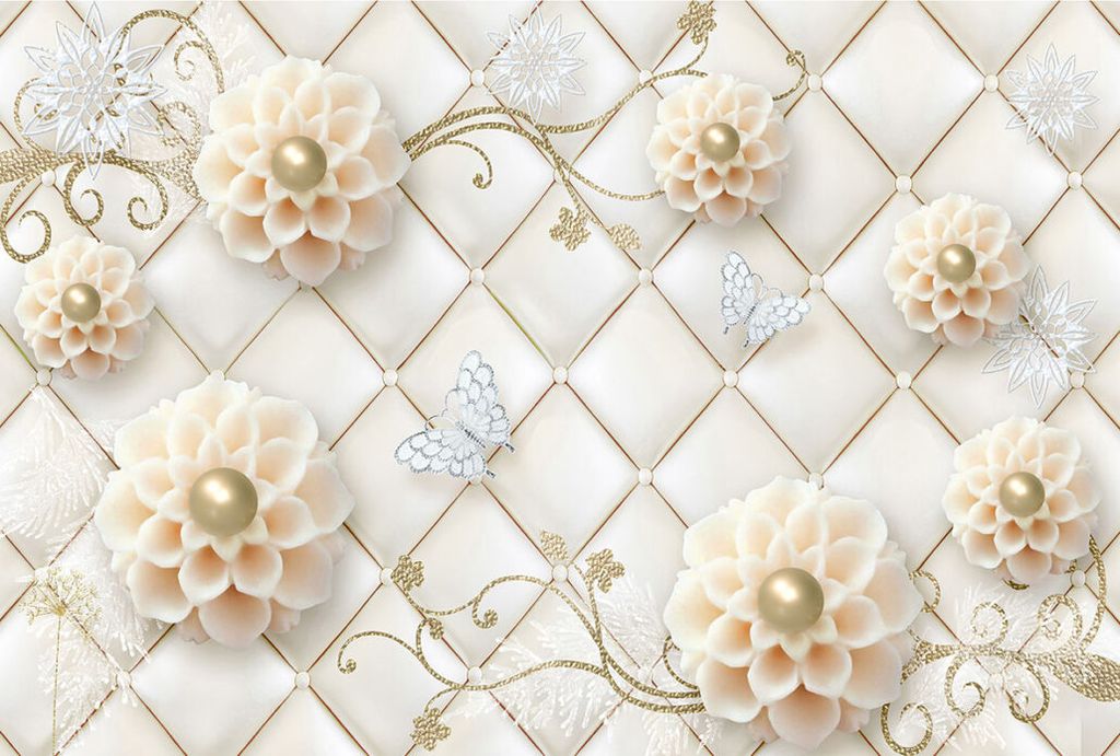 Фотообои Z-238 Цветы с жемчугом на объемном фоне 400х270