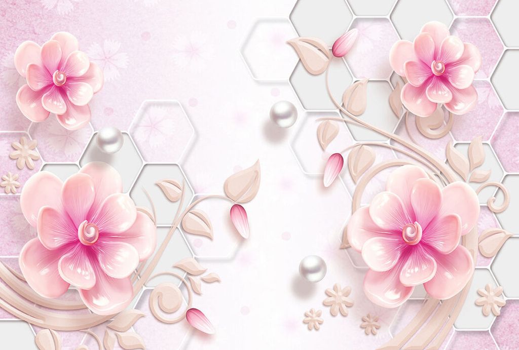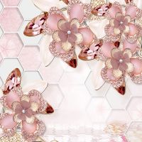 Фотообои Z-225 Розовые цветы с сотами 400х270