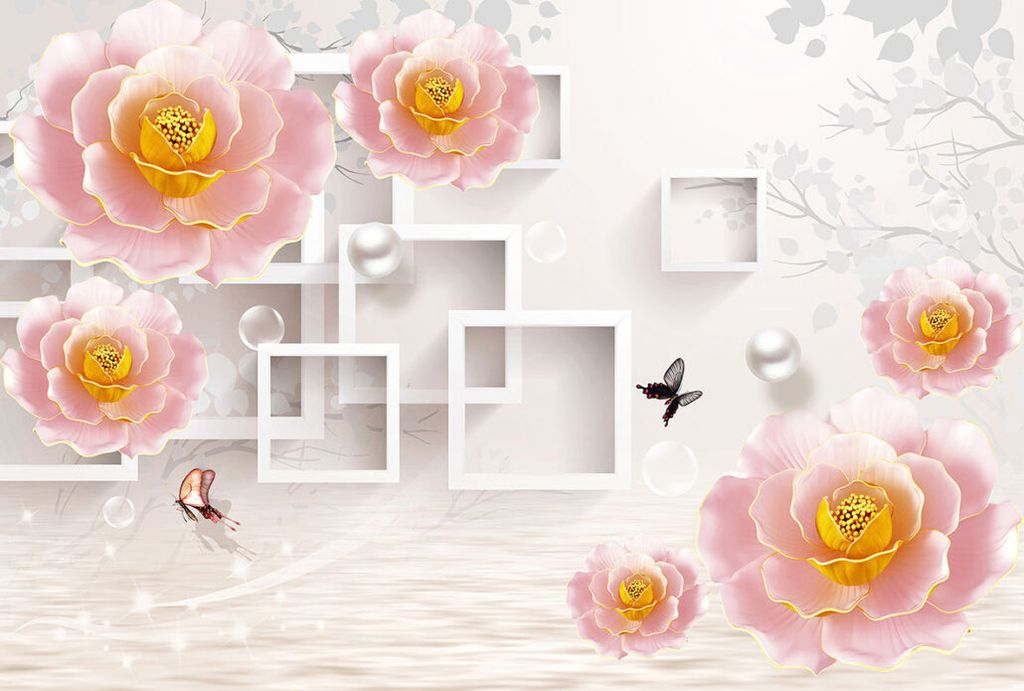 Фотообои Z-222 Розовые цветы на квадратах 400х270