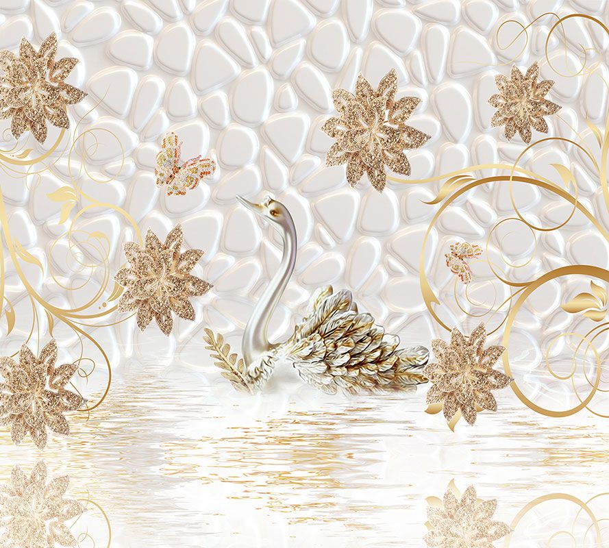 Фотообои Z-204 Лебеди с крупными цветами 400х270