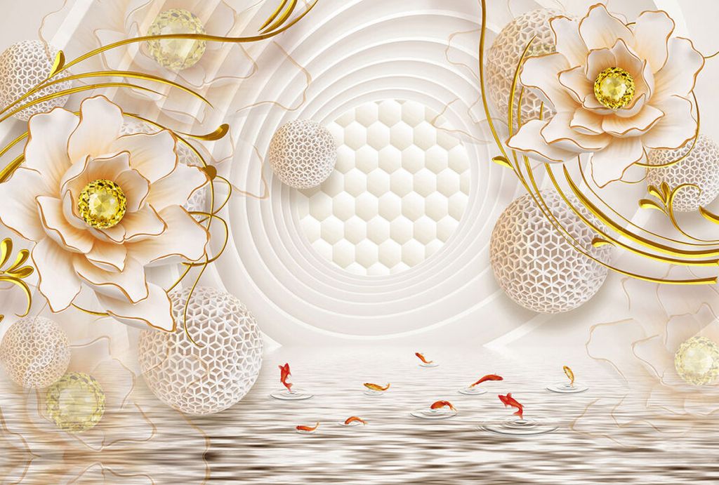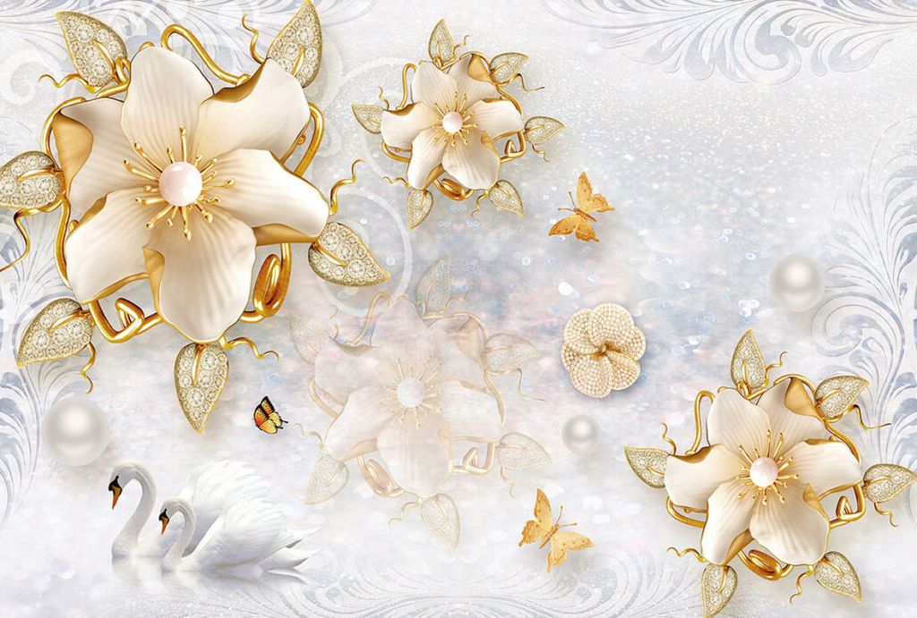 Фотообои Z-198 Керамические цветы с жемчугом 400х270