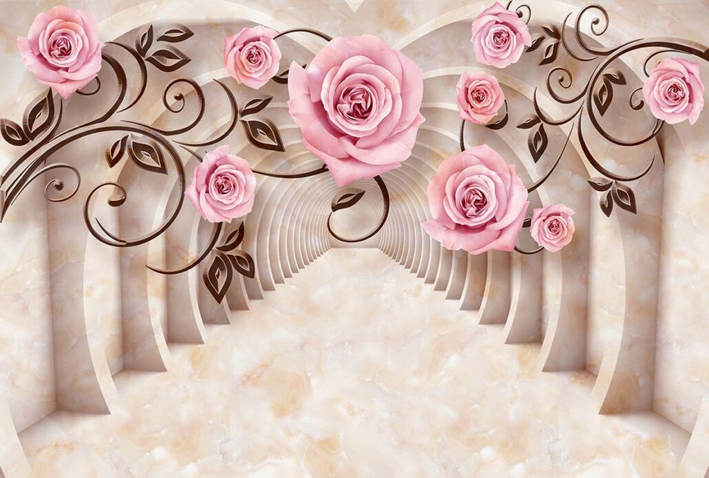 Фотообои Z-210 Мраморный тоннель с розовыми розами 400х270