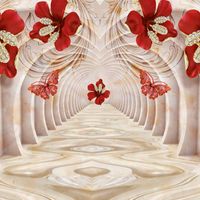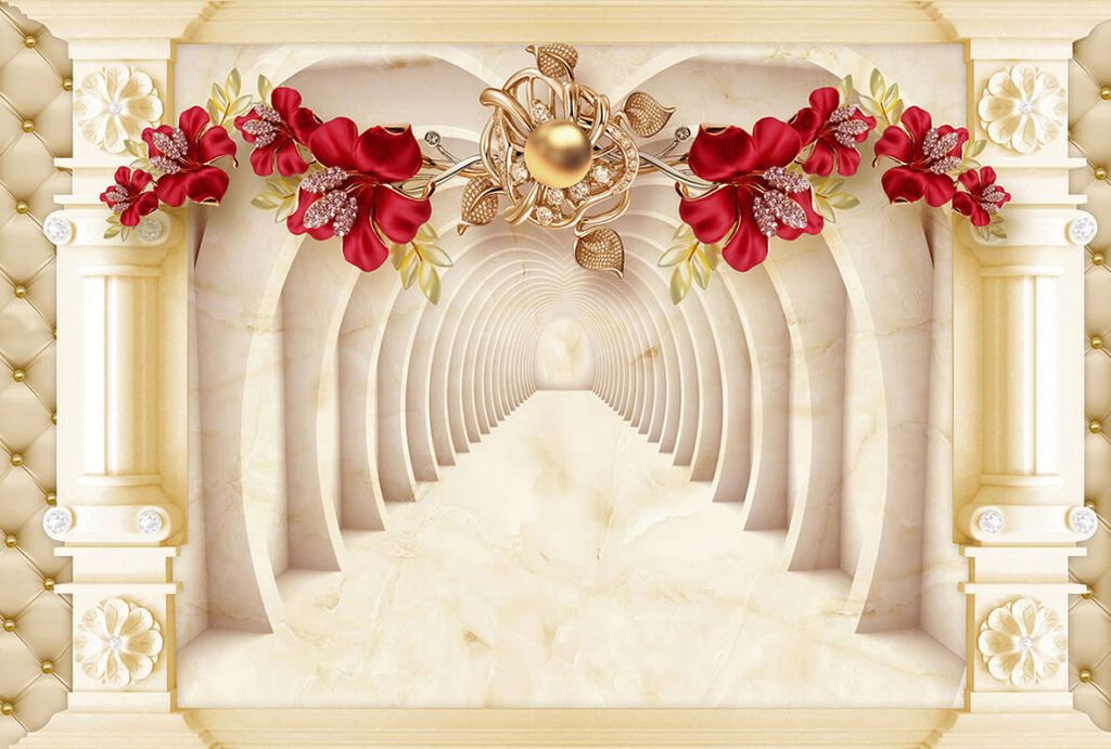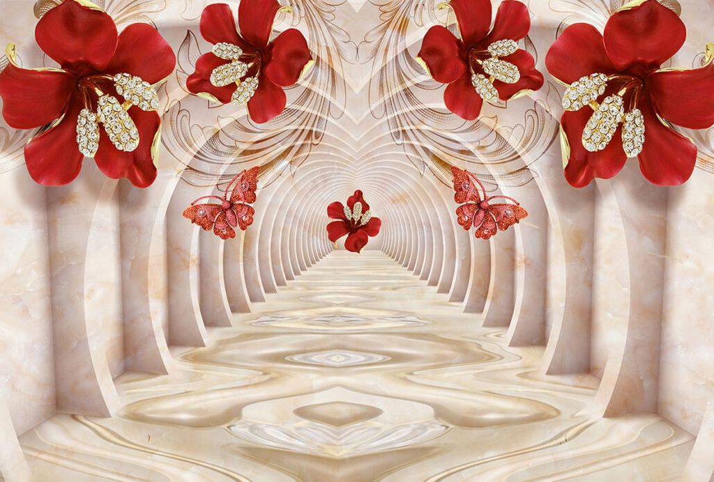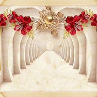 Фотообои Z-209 Мраморный тоннель с красными цветами 400х270