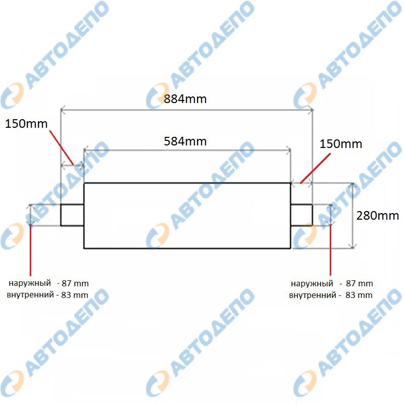 L-584хD-280mm, труба по центру- D86/83x150mm