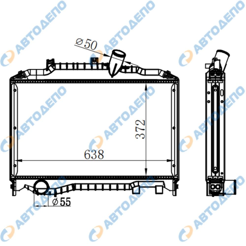 Радиатор охлаждения двигателя. MITSUBISHI CANTER, BUS FE51#, FG537BD, BE436E, BE438E, BE449, FE516B, FE517B, FE518B, FE517B, BE459F, FG537BD, BE449 MI-0189-36-K